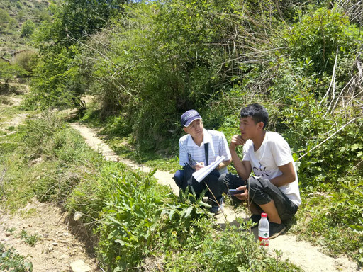 高旭闖在田邊調(diào)查詢問農(nóng)戶外出務(wù)工、子女就讀、種植養(yǎng)殖等情況。