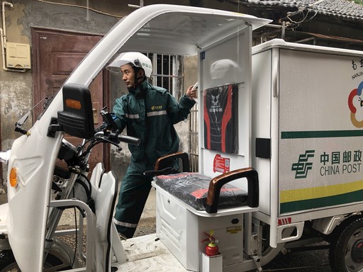剛進(jìn)梅雨季,6月15日一大早,江蘇省南京市連續(xù)發(fā)布雷暴黃色預(yù)警和雷雨黃色預(yù)警,持續(xù)的強(qiáng)降雨導(dǎo)致道路出現(xiàn)積水,路面濕滑、能見度低,更是給投遞員雨天戶外作業(yè)增加了難度和危險。面對惡劣天氣,江蘇省南京市郵政分公司2000余名“快遞小哥”一如既往堅(jiān)守投遞一線,在確保自身安全的基礎(chǔ)上,不負(fù)客戶所托,確保百姓用郵。圖為六合區(qū)分公司雄州營投部投遞員陳桂俊在投遞到縣府街路段時遇到上坡推車前行。□任俊 攝影報道