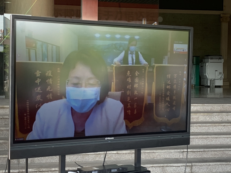 儀式上,廣州郵政與北京郵政通過現(xiàn)場電視大屏,進(jìn)行了遠(yuǎn)程網(wǎng)絡(luò)連線。“雖然天各一方,但視頻連接著你我。”北京郵政副總經(jīng)理王艷十分感動,她在視頻中展示了三面錦旗,向廣州表示,“疫情無情人有情,雪中送碳是親人!”
