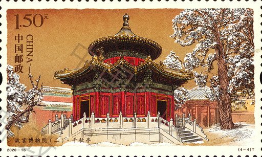 紫禁城建造技藝高超,內(nèi)在考究精妙,外在磅礴大氣,代表著當(dāng)時最高的建造水平。中央軸線上分布著三大殿(太和殿、中和殿以及保和殿)和后三宮(乾清宮、交泰殿以及坤寧宮),左右兩條次軸線上分別分布著慈壽宮、寧壽宮等宮殿。出于防御需要,宮殿建筑外圍筑有宮墻,四周分布有角樓,外有護(hù)城河環(huán)繞。故宮平面示意圖首次登上郵票,細(xì)膩、完整地呈現(xiàn)了故宮恢弘的建筑布局。
