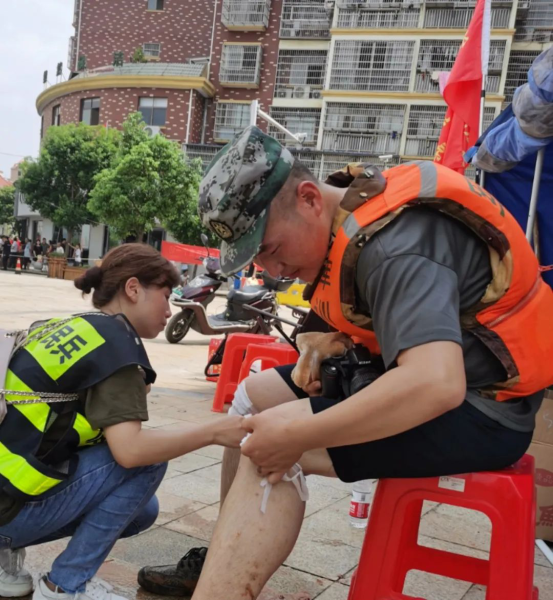 加固堤壩、搶修排險(xiǎn)、封堵管涌、處置隱患······我們和解放軍戰(zhàn)士奮戰(zhàn)在一起,盡最大努力保障人民群眾生命財(cái)產(chǎn)安全。看著汗流浹背的解放軍日夜忙碌的身影,在場(chǎng)的同志們都覺(jué)得應(yīng)該為他們做些什么,隨后,我們準(zhǔn)備了綠豆湯,從扶貧戶(hù)手中購(gòu)買(mǎi)了2000斤西瓜,購(gòu)買(mǎi)了藥品為他們清洗、包扎傷口······我問(wèn)同事們?yōu)槭裁茨敲葱量噙€要這樣做?大家都自豪地說(shuō):“能和這些最可愛(ài)的人一起守衛(wèi)家園,倍感光榮!”