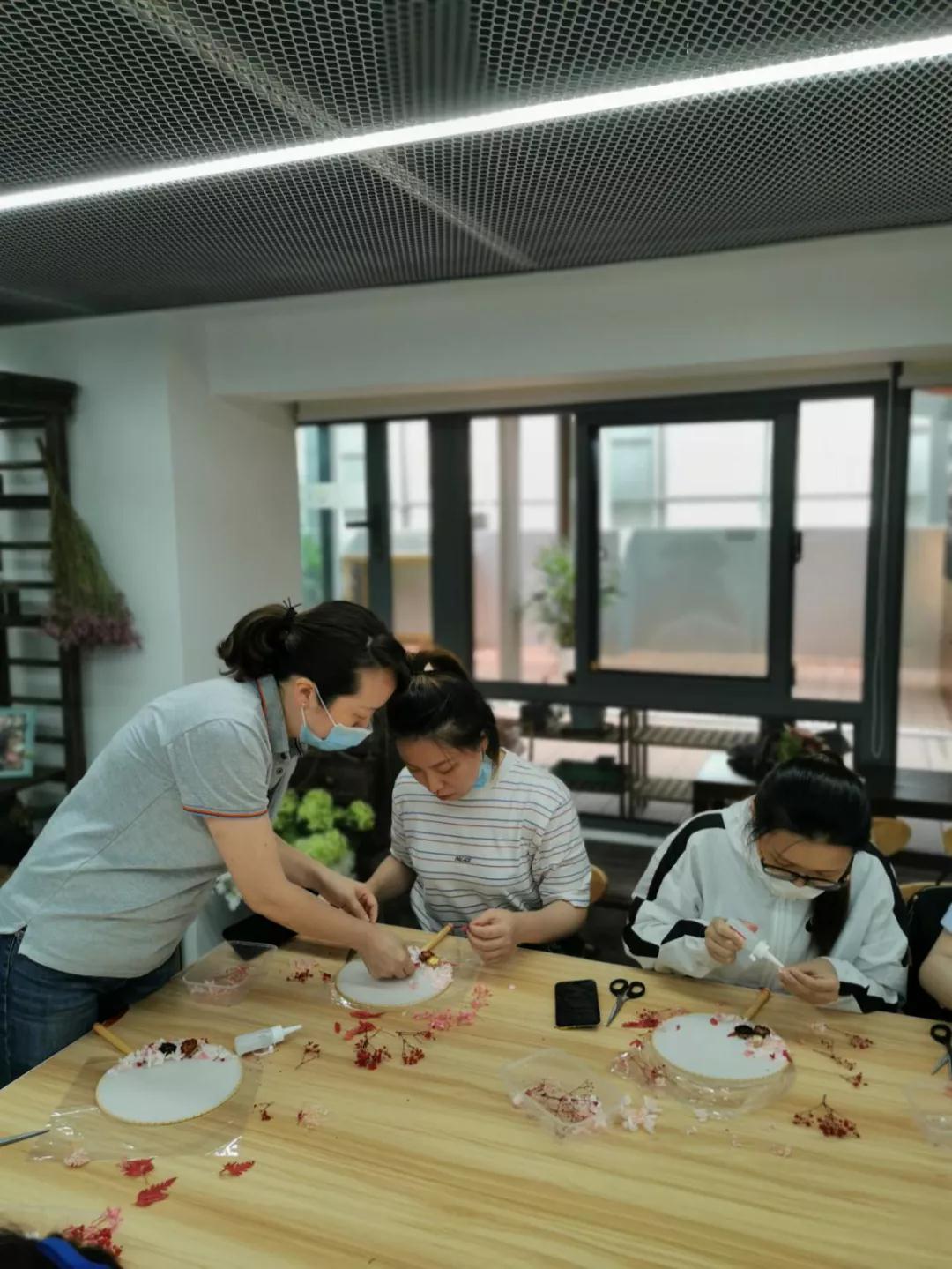 “對,這里的花朵要剪碎一點,做這個要耐心一些。”一位老師正在教海通期貨股份有限公司的10余位員工制作團扇,這是活動中心與該公司的團建項目。為實現項目合作多元化,活動中心主動和周邊企業(yè)共建,從以承接活動為主向樞紐型平臺良性發(fā)展,以樞紐型陣地騰籠換鳥,引入優(yōu)質的工作室資源,不斷輻射附近樓宇白領,吸引白領成為常駐粉絲,更加高效的推進基層文化服務。