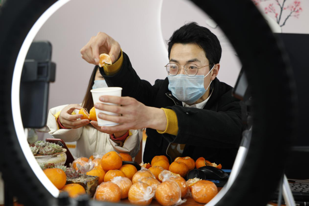 圖為疫情期間直播銷售柑橘   衢州市委宣傳部供圖