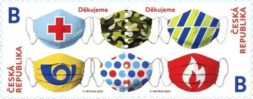 5月4日,馬恩島郵政發行一套8枚《共渡時艱》郵票,鼓勵民眾以團結、關愛和正能量抗擊全球范圍內的新冠肺炎疫情。8枚郵票的主題分別為:愛心、信仰、關愛、同情、感恩話語、社區、工作和科學技術;阿聯酋郵政于5月10日發行“致敬抗擊新型冠狀肺炎英雄”小型張;烏拉圭郵政于5月13日發行《抗擊新型冠狀肺炎》郵票;烏克蘭郵政于5月29日發行“抗擊新型冠狀肺炎”郵票;6月24日,捷克郵政發行一套2枚《口罩》普通郵票,向抗疫一線的工作人員表示感謝。