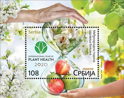 為提高大眾和政策制定者對植物健康重要性的認識,以實現可持續發展目標,2020年定為“國際植物健康年”。在第二季度中,不少國家都發行了“國際植物健康年”郵票,如吉爾吉斯斯坦郵政和塞爾維亞郵政分別于4月4日和4月22日發行;韓國郵政的郵票圖案為因健康植物而美好的自然環境,整張內含郵票16枚,邊紙圖案為植物莖葉;拉脫維亞郵政的郵票以開花的植物與拉脫維亞文版IYPH標志為圖案,整張內含郵票10枚,上下各5枚對倒印制。
