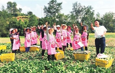 張武和菜農們一起,在菜地里上演一場時尚大氣的圍裙秀?!觞S倩 攝