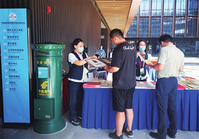 在文化服務專題展區,北京郵政商業信函局帶來了聲音明信片打印機,參觀者紛紛上前體驗,場面十分熱鬧?!安僮鞣浅7奖悖恍枰獟叽a選擇自己喜歡的照片作為明信片圖案,再按照提示進行錄音,就可以拿到一枚專屬的明信片。”剛拿到聲音明信片的張女士興奮地告訴記者,這枚明信片上印有二維碼,只需掃碼就可以聽到剛剛錄制的聲音。