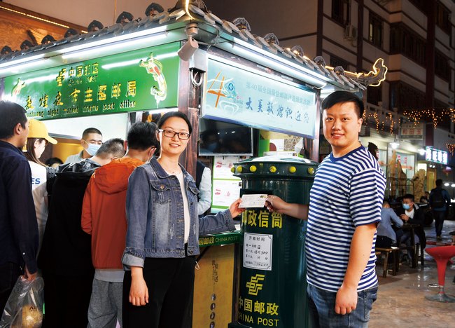 為深入貫徹集團公司網(wǎng)點轉型發(fā)展的要求,積極融入地方經(jīng)濟,甘肅省敦煌市郵政分公司在敦煌夜市設立了主題郵局,為游客提供優(yōu)質的用郵服務和獨具特色的郵品、文創(chuàng)產(chǎn)品。該郵局設立以來,每天人頭攢動,游客爭相在郵筒前留影,已成為敦煌夜市的“打卡地”。
