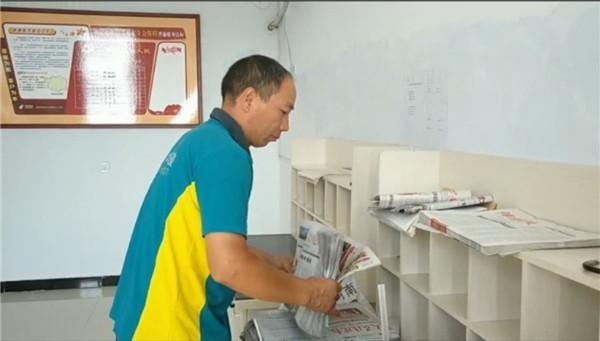在獅豹頭鄉郵政支局的一間大屋子里,報刊、信件的分揀對閆見海來說輕車熟路?!胺謷罂耐瑫r,我就把報紙翻看完了,路上遇到村民會問我,‘今天有啥新聞’,我就說給他們聽?!遍Z見海笑著,將報刊分裝進一個褡褳樣的郵包里,斜挎在肩上。