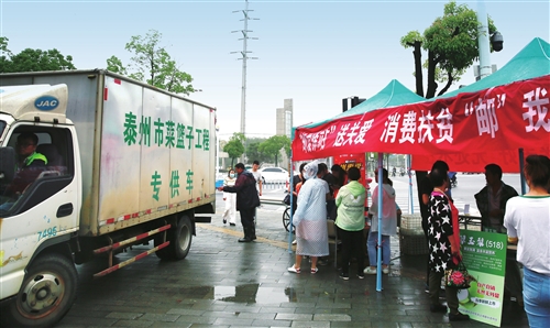 泰州郵政與泰州農(nóng)業(yè)農(nóng)村局聯(lián)合舉辦“新型農(nóng)業(yè)經(jīng)營主體農(nóng)副產(chǎn)品社區(qū)行”公益助農(nóng)活動(dòng)。□周群峰 攝