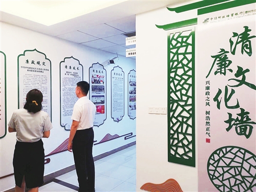 清廉文化墻吸引員工駐足觀看。
