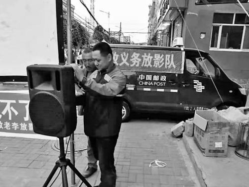 每個工作日,李樹山會駕車行駛90公里,到明城鎮所轄村屯收、投遞郵件或包裹。當村干部得知他義務放電影,便希望他也能來“光顧”自己的村。只要他們約好時間,李樹山便會開著車拉著設備上門放映。
