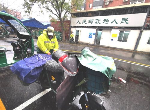 北京日報客戶端:帶著暖暖的體溫!雨雪中,北京投遞員這個動作更暖心