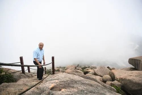 海風(fēng)帶著濕熱的水汽吹過外伶仃島,山間云霧彌漫。崖邊,一粒種子,掉落在石頭縫里。石頭越硬,地勢越險,海風(fēng)越強,它根扎得越深、枝抱得越緊。這就是羅漢松,蒼勁、挺拔,生命力蓬勃。