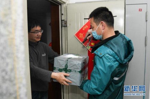 2月11日,中國郵政攬投員劉元元在安徽省合肥市青陽路社區(qū)一處居民小區(qū)內派送快遞。當日是除夕,不少行業(yè)的工作人員依然堅守崗位,在工作中迎接春節(jié)的到來。