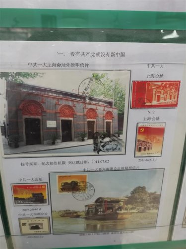 展覽不僅展出了郵票,還包括極限明信片、實(shí)寄封、紀(jì)念封等,品類(lèi)多樣。比如這張中共一大嘉興南湖會(huì)址極限明信片,其上方的郵票、明信片和郵戳上的圖案高度一致,均表現(xiàn)的是嘉興南湖紅船。