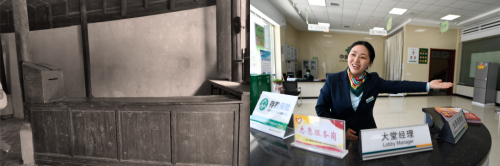 跨過高高的門檻,走進湘鄂西省郵政總局舊址,看到木質的柜臺上,一個陳舊的木質信箱靜靜地立在一旁,穿越了那段歷史,展現在我們面前。我們仿佛看到郵政前輩們在柜臺前認真地工作。在現代郵政寬敞明亮的營業廳內,拉開透明的玻璃門,大堂經理微笑著熱情地迎來送往,堅守著人民郵政為人民的服務宗旨。
