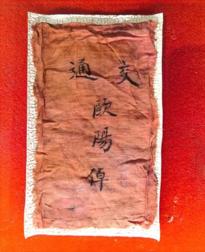 這份交通證只有巴掌那么大,用紅綢布制作,上面橫排寫著“交通”兩個字,下面就是他的名字“歐陽倬”, 他就是當(dāng)年井岡山上的一位紅色情報交通員。