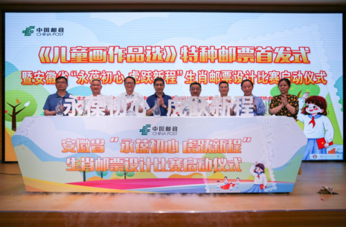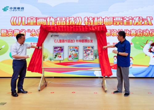 6月1日上午,由安徽省教育廳、中國郵政集團有限公司安徽省分公司、安徽省集郵協會主辦的《兒童畫作品選》特種郵票首發儀式暨安徽省“永葆初心 虎躍新程”生肖郵票設計比賽啟動儀式在合肥新站壽春實驗中學舉行。