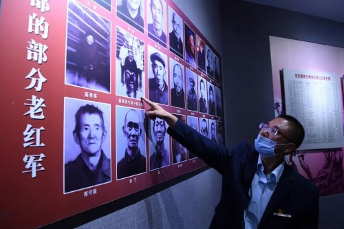在臘子口戰役紀念館,向軍濤領著我們來到一面展墻,指著其中的兩張照片自豪地介紹:“這是我的奶奶高秀英,是一名光榮的紅軍戰士。”通過向軍濤的敘述,我們得知,向軍濤的奶奶高秀英于1932年帶著年幼的弟弟高步清一起參加了紅軍。從1932年到1936年,跟著紅四方面軍輾轉各地,從婦女獨立營營員到班長,一路走來,經歷了諸多苦難。后因交戰時,右手的四個指頭被打斷,傷勢嚴重,無法繼續前行,而散落在臘子口至茨日那一帶。