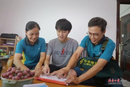“每年到七八月,我都要投遞錄取通知書。每當看到考生拿到自己心儀大學的通知書全家人開心的樣子,真是既高興又羨慕。沒想到,今天我也有機會體會這樣的心情,而且是親手將錄取通知書送到自己孩子手中……”對于海口郵政投遞員盧志強來說,從業(yè)30年來今天的心情最為特別。