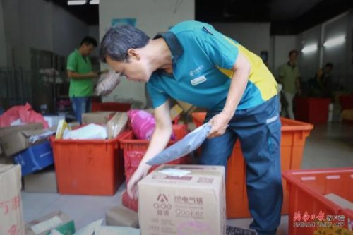 “老盧,你兒子的錄取通知書到了,今天就派你去投遞了。快過來登記下,你可要請客呀!”25日上午8點不到,在中國郵政集團有限公司海口市分公司振興營攬投站,工作人員從今天上午6點運達的快件中,分揀出一袋高考錄取通知書。打開袋子,“眼尖”的站長李世杰一眼就看出其中一個快件來自北大招生辦,收件人正是盧志強的兒子盧海山,就趕緊招呼“老盧”去投遞。