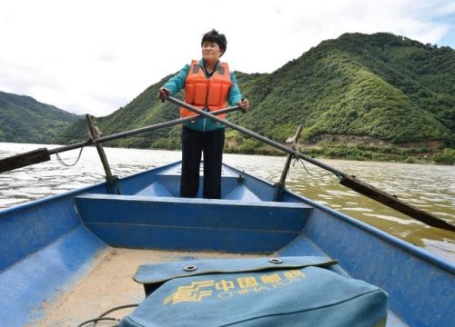 8月16日,石泉縣曾溪鎮(zhèn),趙明翠劃著小船,載著錄取通知書、網(wǎng)購(gòu)包裹等郵件去往對(duì)岸。“往常騎摩托車,今天前面修路,記者同志你扶好。”一葉小舟在寬闊的漢江上橫渡,此時(shí)江面雖風(fēng)平浪靜,但乘船者心里卻“波濤洶涌”。當(dāng)年18歲的趙明翠第一次送郵件也是走的這條水路。