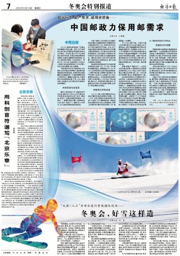 在弘揚(yáng)優(yōu)秀傳統(tǒng)文化和奧林匹克文化的同時(shí),中國郵政在郵票印制中引入先進(jìn)的科技手段,以嶄新的形式呈現(xiàn)北京冬奧會(huì)的精彩魅力。以《北京2022年冬奧會(huì)——競賽場館》紀(jì)念郵票小型張為例,首次應(yīng)用菲涅爾透鏡微納光刻技術(shù)。國家速滑館建設(shè)所用的剩余玻璃材料經(jīng)過特殊工藝加工成50微米的可用顆粒,摻入紅色雕刻油墨中,制作成“冰絲帶特種油墨”。在紫光燈下,方寸間的場館可以立即呈現(xiàn)出“冰絲帶”霓虹璀璨、光影流轉(zhuǎn),場館周圍燈火輝煌的夜景。“冬奧會(huì)郵票郵品設(shè)計(jì)精美,很受歡迎,極大地滿足了各國運(yùn)動(dòng)員和來賓的需求。”國家郵政局局長馬軍勝說。