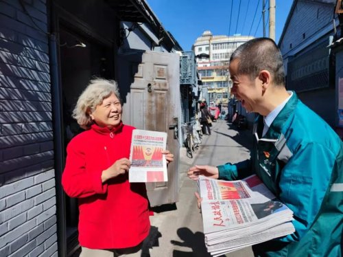 投遞員早早到崗并完成準備工作,開始出班投遞,把最新的兩會消息送達訂戶手中。