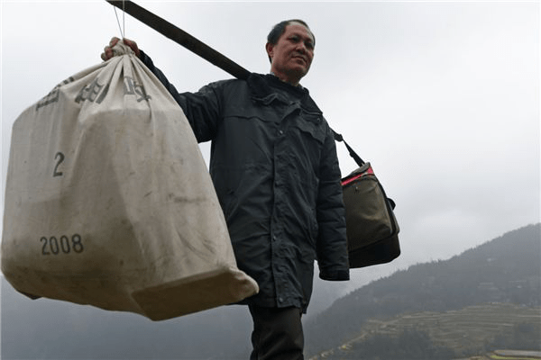 中國郵政集團公司貴州省錦屏縣分公司啟蒙支局的鄉(xiāng)郵員張林昌曾是一名老兵,他1983年入伍,1987年退役,退役后,他主動申請到錦屏縣最難走的郵路送信送報,一干就是32年。