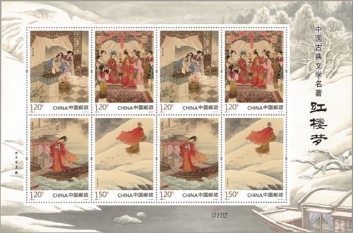 4月23日,中國郵政發行《中國古典文學名著——〈紅樓夢〉(五)》特種郵票一套4枚、小型張1枚。郵票圖案名稱分別為:黛玉焚稿、金玉聯姻、探春遠嫁、寶玉卻塵,小型張圖案名稱為:寒塘鶴影。全套郵票面值11.10元。