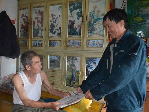 現(xiàn)在,兩江鎮(zhèn)的年輕人多外出打工,好多村屯留守的都是60歲以上的老人,耕地撂荒情況比較嚴(yán)重。2012年,為了響應(yīng)國家號召,永紅村村主任鄭吉春成立了合作社,全村33多公頃的耕地都由他承包耕種,單肥料款這一項(xiàng)就需要先期投入10多萬元。鄭吉春在資金周轉(zhuǎn)上有很大困難,合作社又剛剛成立,借款成了難題,他在王會明投遞時,說起了自己的焦心事。王會明熟悉兩江鎮(zhèn)的每一塊土地,他知道只要方法得當(dāng),種子、肥料選的對,永紅村這片地收成肯定錯不了,他幫鄭吉春找到鎮(zhèn)里賣農(nóng)機(jī)的劉福軍,希望從他那里借10萬元錢,劉福軍說:“這錢別人借沒有,王會明借什么時候都有,因?yàn)橥鯐鬟@三個字就是保證,是信譽(yù)!我信他!”借來了錢,王會明又幫著鄭吉春買種子、化肥,經(jīng)常到地里觀察莊稼的長勢,和鄭吉春研究改良耕種方法。功夫不負(fù)有心人,在王會明的幫助下,鄭吉春的地獲得了大豐收,畝產(chǎn)1100公斤,純收入25萬元。秋收時,看著鄭吉春樸實(shí)滄桑的臉上滿是幸福的笑容,王會明真切地感受到,他和鄉(xiāng)親們息息相關(guān),心心相印,是一家人。