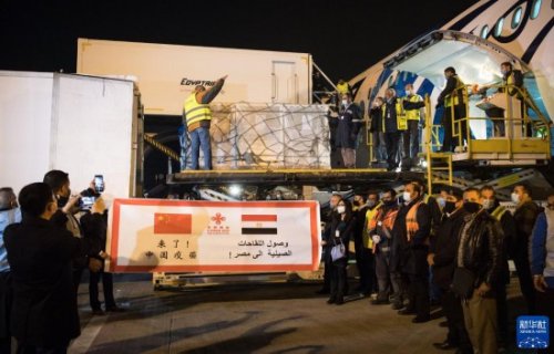 2021年2月23日,中國(guó)援助埃及的首批新冠疫苗抵達(dá)埃及開(kāi)羅國(guó)際機(jī)場(chǎng)。新華社記者 鄔惠我 攝