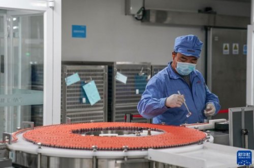 2021年7月8日,工作人員在北京科興疫苗生產(chǎn)流水線上工作。新華社記者 彭子洋 攝