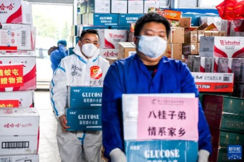 2月15日,在廣西百色市德保縣一處倉(cāng)庫(kù),工作人員在搬運(yùn)抗疫物資。新華社記者 曹祎銘 攝