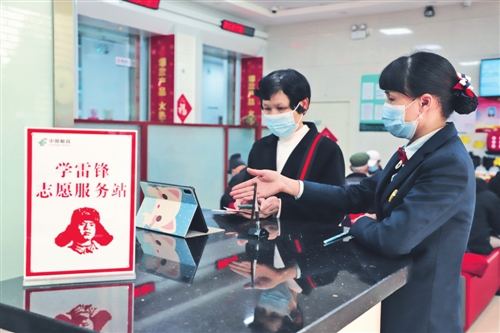 為擦亮“學(xué)雷鋒”志愿服務(wù)品牌,貴港市70個郵政金融網(wǎng)點目前都設(shè)立了志愿服務(wù)站,自覺為客戶提供更加優(yōu)質(zhì)的服務(wù),進一步提升服務(wù)滿意度。圖為該分公司和平路網(wǎng)點員工向客戶講解金融知識。