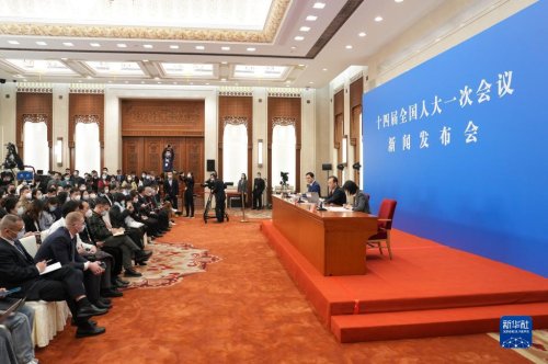 3月4日,十四屆全國人大一次會議在北京人民大會堂舉行新聞發(fā)布會。大會發(fā)言人王超就會議議程和人大有關(guān)工作回答中外記者提問。新華社記者 邢廣利 攝