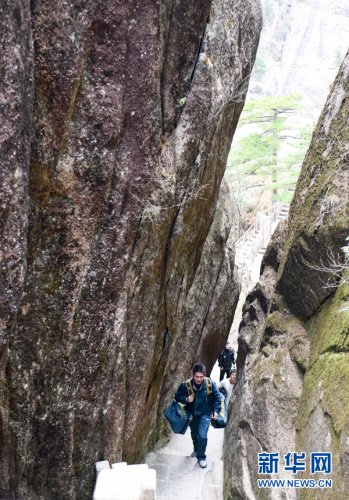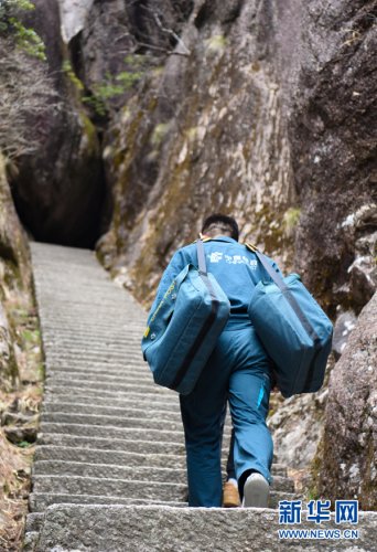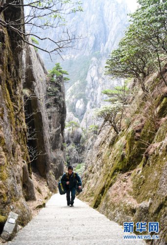 黃山素有“三十六大峰,三十六小峰”之稱,主峰蓮花峰海拔高達1864.8米。風景區內,山路崎嶇、不通車馬,山上工作人員和游客所需的報刊、信件等,只能靠謝菲俊背著郵包送上山。