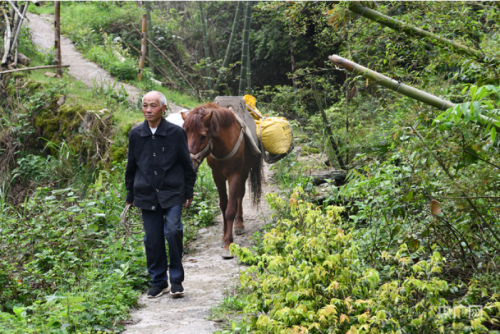 今年72歲的張人越,是湖南省新邵縣大新鎮(zhèn)三和村8組村民,從26歲開始,他就在崎嶇陡峭的山路上幫鄉(xiāng)親們用馬馱東西,給人送貨上門。