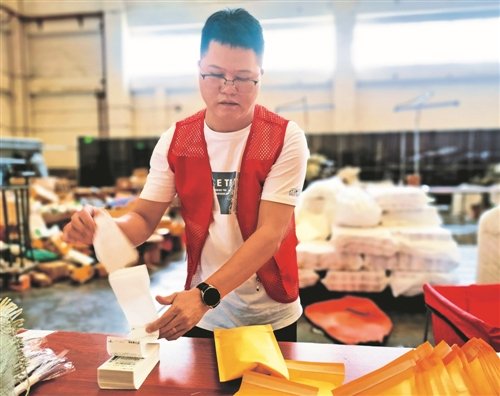 “只要客戶的訂單一到,我們這邊就忙起來。客戶把需求發給我們,我們就幫客戶完成配貨、打包的工作。在深圳這樣寸土寸金的地方,咱們郵政不僅幫客戶節省了倉儲費用,還免去了他們雇人打包的負擔。”7月16日19點,位于廣東省深圳市龍崗區富安路的華南城郵件處理中心倉儲場地燈火通明,華南城倉儲中心主管林桂茂對記者說。在他身旁,15個打包臺席全流水作業,近3.5萬件包裹打包后直接拉至倉儲旁邊的華南城郵件處理中心,直接上機分揀處理,為客戶發貨提速提效。