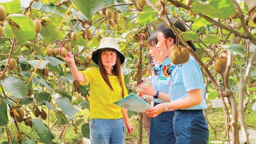 郵政員工走進果蔬大棚服務客戶。 □袁淑美 攝