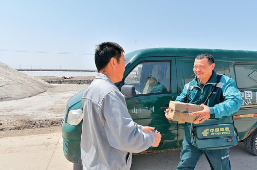 濱州位于山東北部,因瀕臨渤海而得名。濱州市無棣縣北部沿海地區自古以鹽為業,全縣40多萬畝鹽田星羅棋布。這里的4個郵政網點、36個自提點、23個便民站,服務45個村、72家企事業單位,包括鹽場工人、漁民等共計12.2萬人。