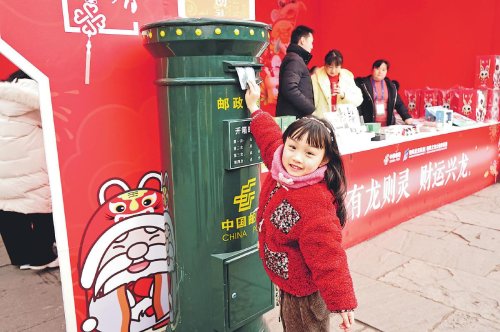 2月8—24日,由四川省德陽市人民政府主辦的“祈福文廟·龍騰德陽”甲辰年德陽文廟新春游園會在文廟商圈舉辦。德陽市郵政分公司以德陽特色文創產品為依托,在文廟景區內開設“德陽文廟主題郵局”,為廣大市民與游客提供郵政特色明信片、集章冊、文創產品銷售與集章集戳、游園指南等全方位服務。德陽郵政特別為此次游園活動制作主題紀念封6000枚,在現場放置了郵筒,讓市民與游客將新春祝福寄往全國各地。□王一 俞穎 攝影報道
