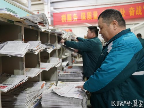郭紅崗(右一)在分揀報紙。長城網(wǎng)·冀云客戶端記者 劉俐驗 攝