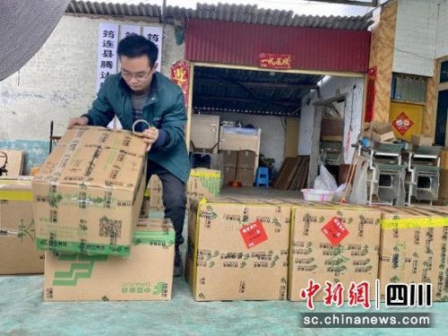 快遞小哥嚴杰為茶葉加工商打包茶葉。申云肖 攝