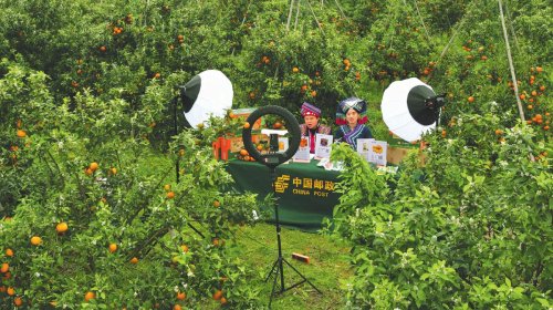 南寧郵政主播在武鳴沃柑基地直播帶貨。□中國郵政報記者 賈紅偉 攝