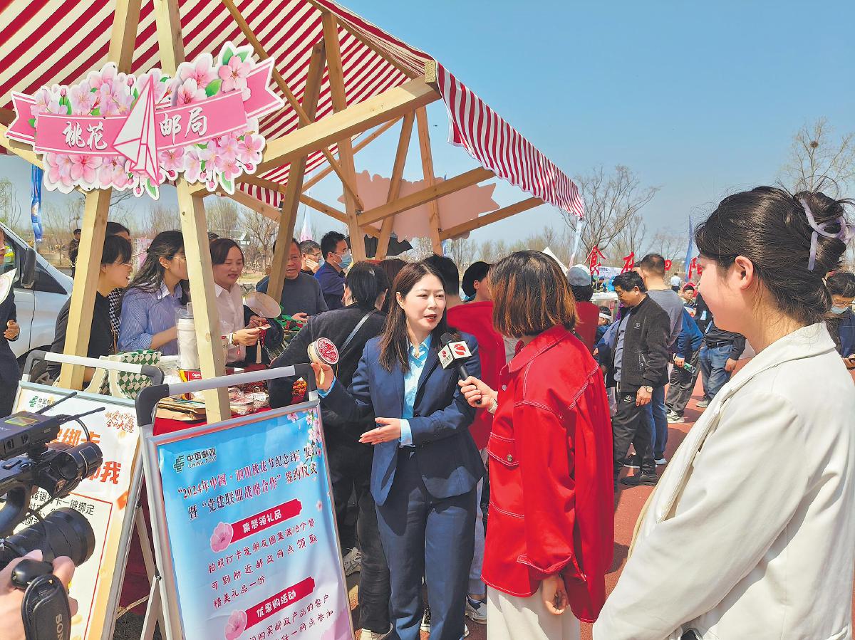 活動現場,雙方代表為紀念封發行揭幕,并簽訂黨建聯盟戰略合作協議。同時,泗陽郵政設置桃花主題郵局,方便市民購買郵政特色文創產品和農產品。