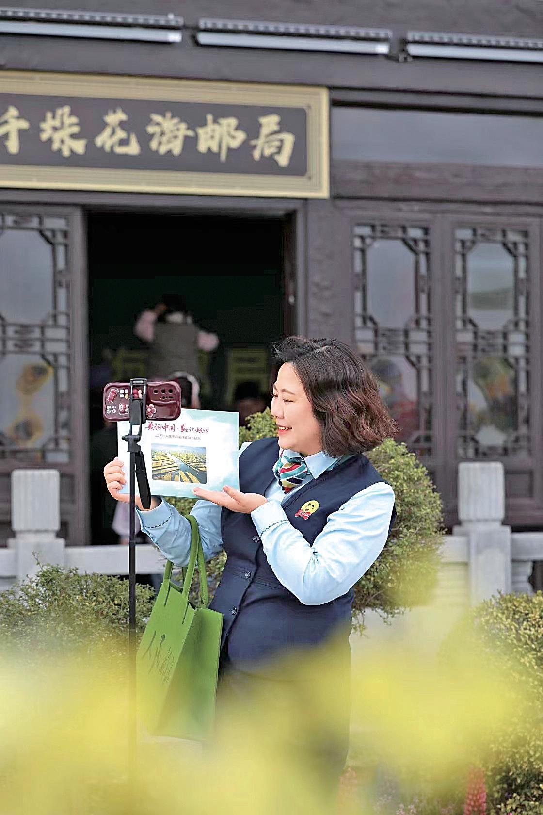 千垛花海郵局通過直播展示景區風光和傳播郵政文化。