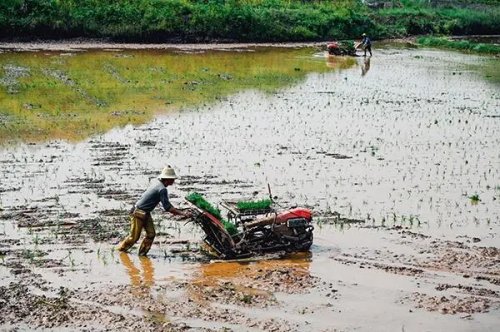 農戶利用插秧機進行耕種。郵儲銀行重慶分行供圖