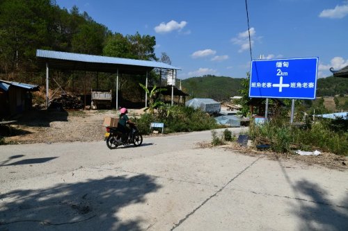 從阿里村出發(fā),采訪組沿著臨近中緬邊界的抵邊村郵路前行,路旁的邊界安全提示牌以及“黨的光輝照邊疆,邊疆人民心向黨”的紅色標語牌都顯示出這里特殊的地理位置。采訪組一行的目的地班角老寨距中緬國境線僅1公里,與緬甸撣班和佤邦毗鄰,素有“國門第一寨”之稱。